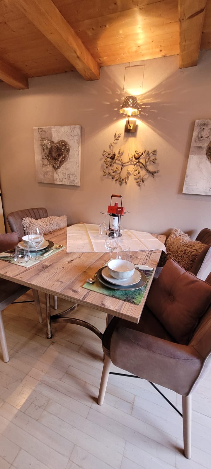 Essecke für 4 Personen mit Ausgang zum vergrößerten Balkon zum Frühstücken mit Panoramablick und sonniger Ost/Südseite